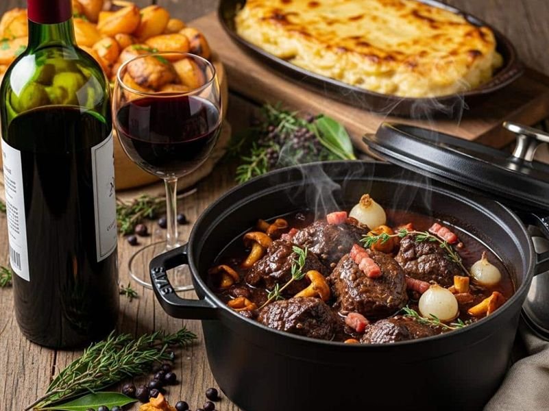 Le choix du vin détermine directement la qualité finale de votre plat. Recherchez un vin rouge corsé et tannique, suffisamment structuré pour supporter une longue cuisson sans perdre son caractère.